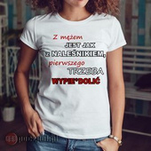Z mężem jest jak z naleśnikiem,pierwszego trzeba wypie*dolić - koszulka damska
