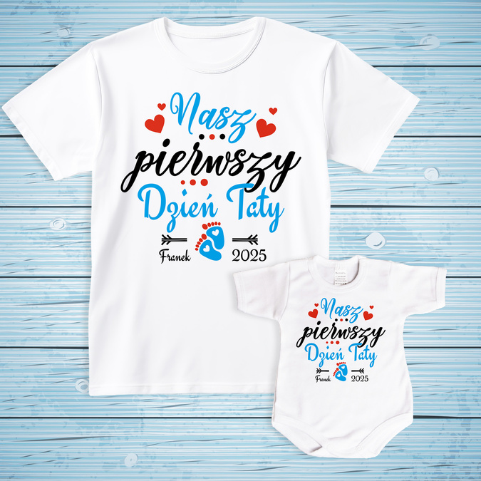 Body niemowlęce oraz koszulka dla taty „Nasz pierwszy Dzień Taty” to oczywisty podarunek z okazji nadchodzącego Dnia Ojca. Równie dobrze sprawdzi się jednak jako upominek na Baby Shower czy imprezę pępkową. Podaruj dumnemu tacie sympatyczny upominek i świętuj razem z nim ten piękny czas!