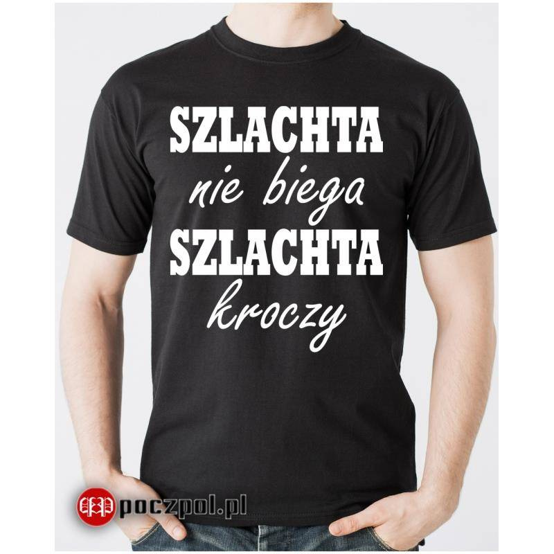 - Koszulka męska z nadrukiem "Szlachta nie biega szlachta kroczy"