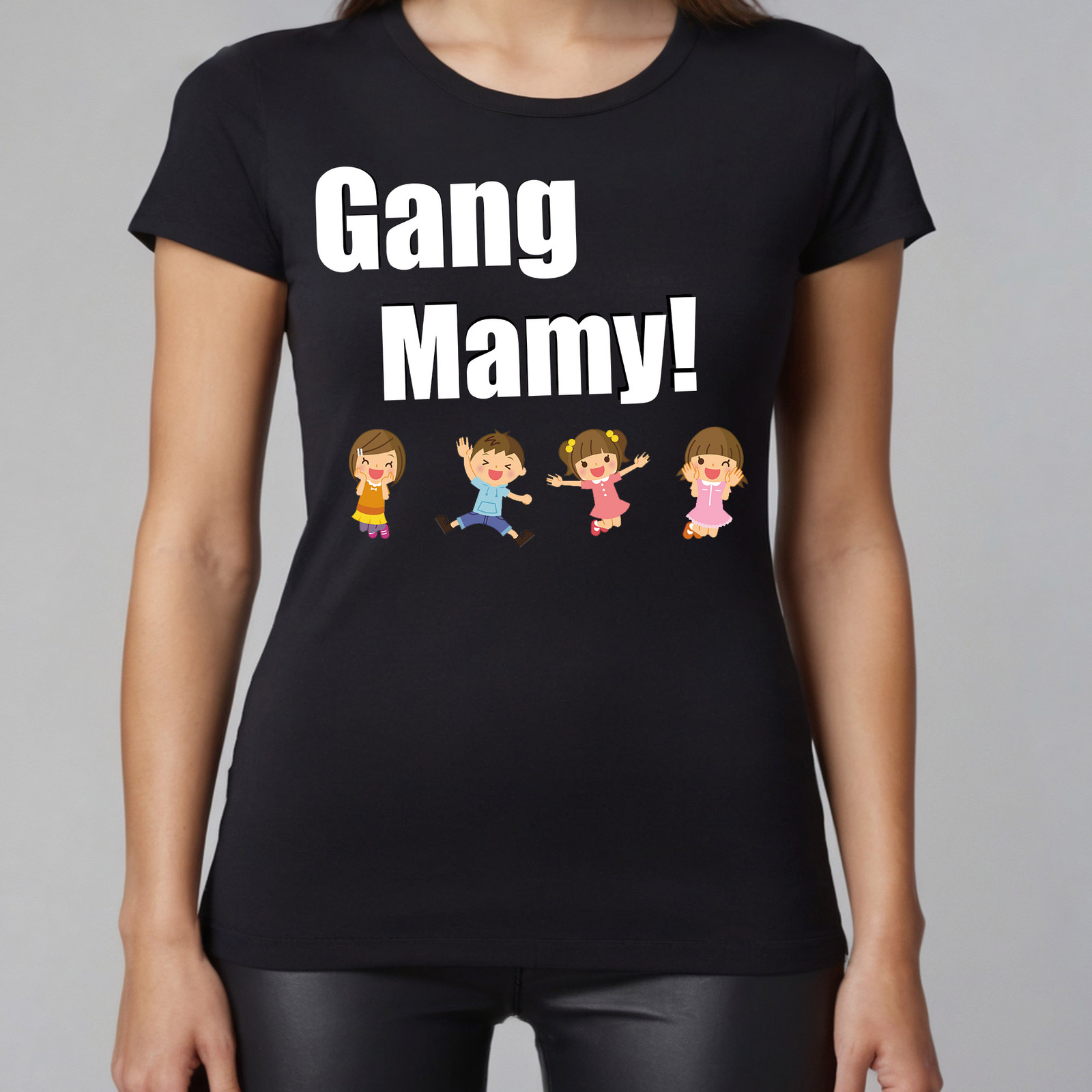 Na froncie dumnie (i z przymrużeniem oka!) widnieje napis "Gang Mamy". Czcionka została dobrana tak, by krzyczeć (ale w ten zabawny, pełen miłości sposób): "Hej świecie, oto ja i moja wesoła ekipa!".