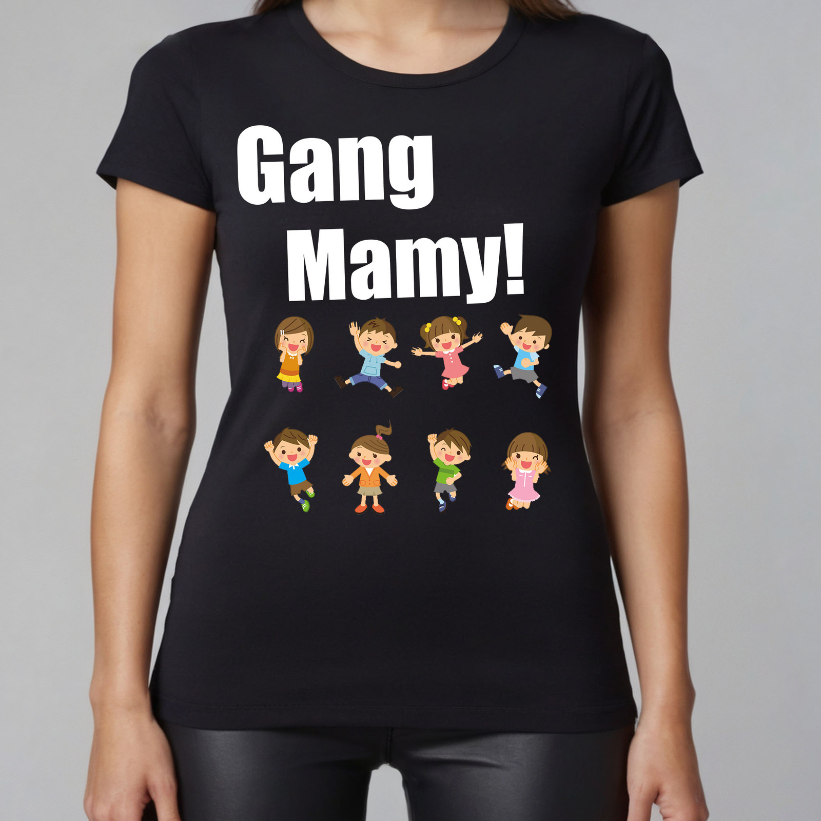 Na froncie dumnie (i z przymrużeniem oka!) widnieje napis "Gang Mamy". Czcionka została dobrana tak, by krzyczeć (ale w ten zabawny, pełen miłości sposób): "Hej świecie, oto ja i moja wesoła ekipa!".