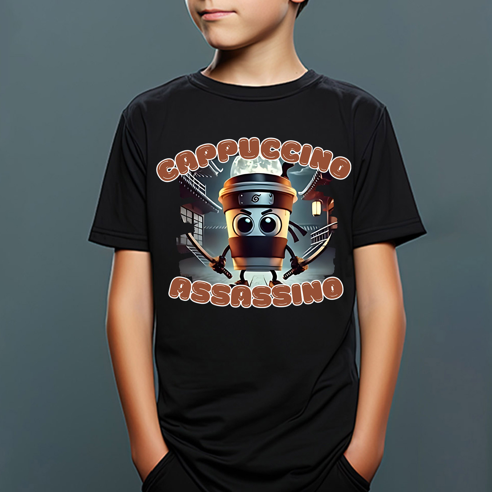 Szukasz wyjątkowej koszulki, która rozśmieszy i zachwyci Twoje dziecko? Ta koszulka z zabawnym nadrukiem "Cappuccino Assassino" to strzał w dziesiątkę!