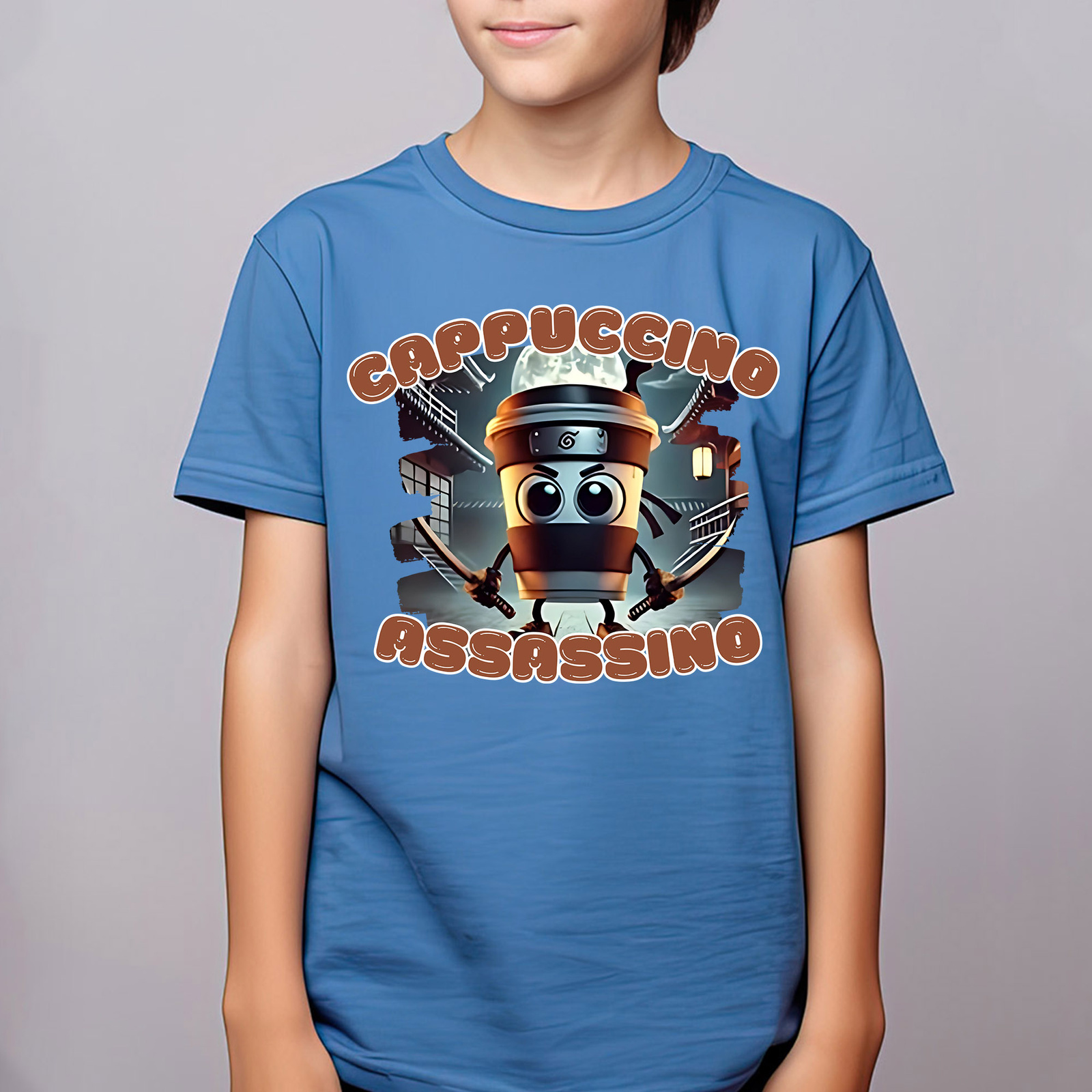 Szukasz wyjątkowej koszulki, która rozśmieszy i zachwyci Twoje dziecko? Ta koszulka z zabawnym nadrukiem "Cappuccino Assassino" to strzał w dziesiątkę!