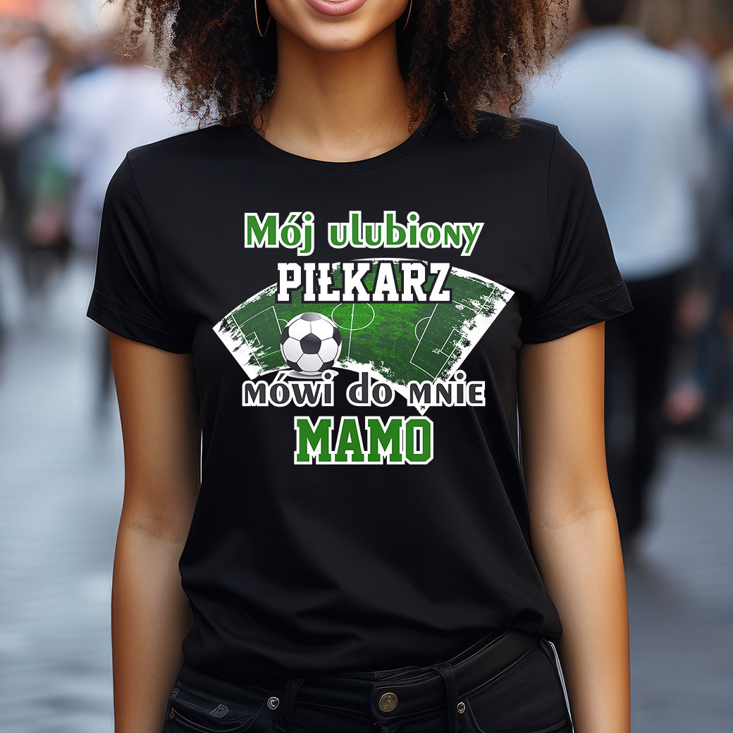 Centralnym punktem koszulki jest wysokiej jakości nadruk z napisem "Mój ulubiony piłkarz mówi do mnie Mamo". Czcionka została starannie dobrana, aby była czytelna, estetyczna i trwała. Możliwe są różne warianty kolorystyczne i style czcionki, co pozwala na jeszcze lepsze dopasowanie do indywidualnych preferencji. Nadruk wykonany jest nowoczesną technologią, gwarantującą jego odporność na pranie i blaknięcie, dzięki czemu koszulka będzie cieszyć oko przez długi czas.