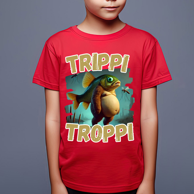 Szukasz wyjątkowej koszulki, która rozśmieszy i zachwyci Twoje dziecko? Ta koszulka z zabawnym nadrukiem "Trippi Troppi" to strzał w dziesiątkę!