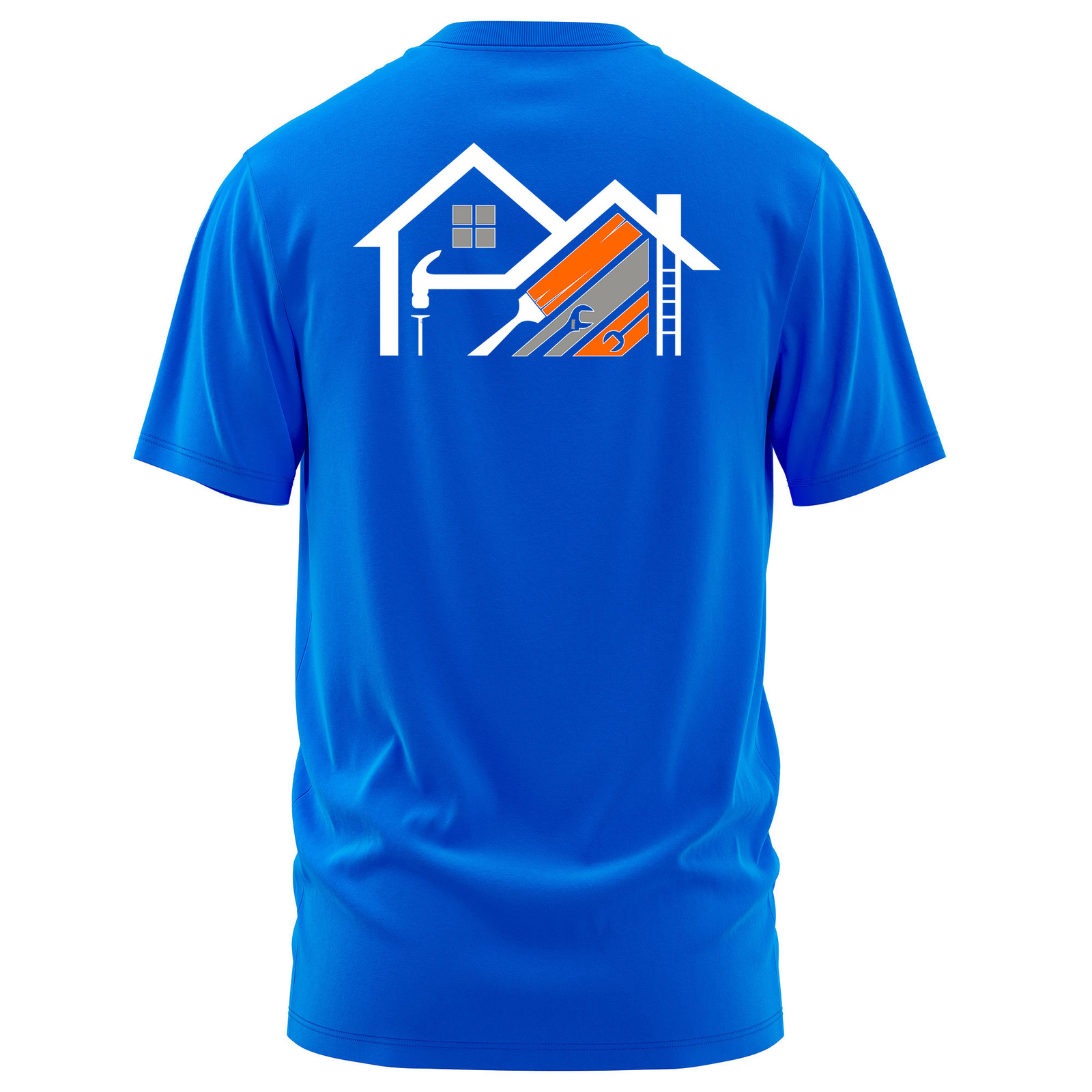 Koszulkadla firm budowlanych z małym nadrukiem z przodu i dużym na plecach.