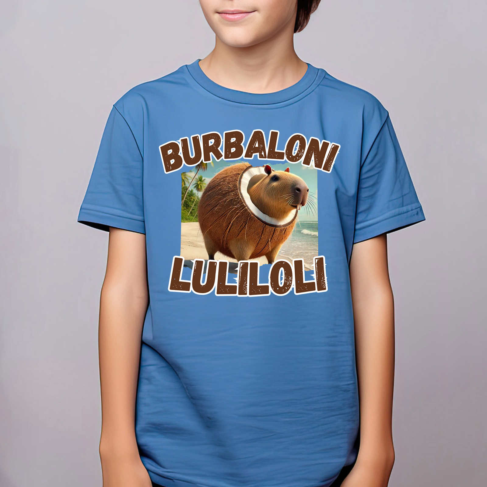 Burbaloni Luliloli - koszulka dziecięca - Italian Brainrot - kapibara w kokosie