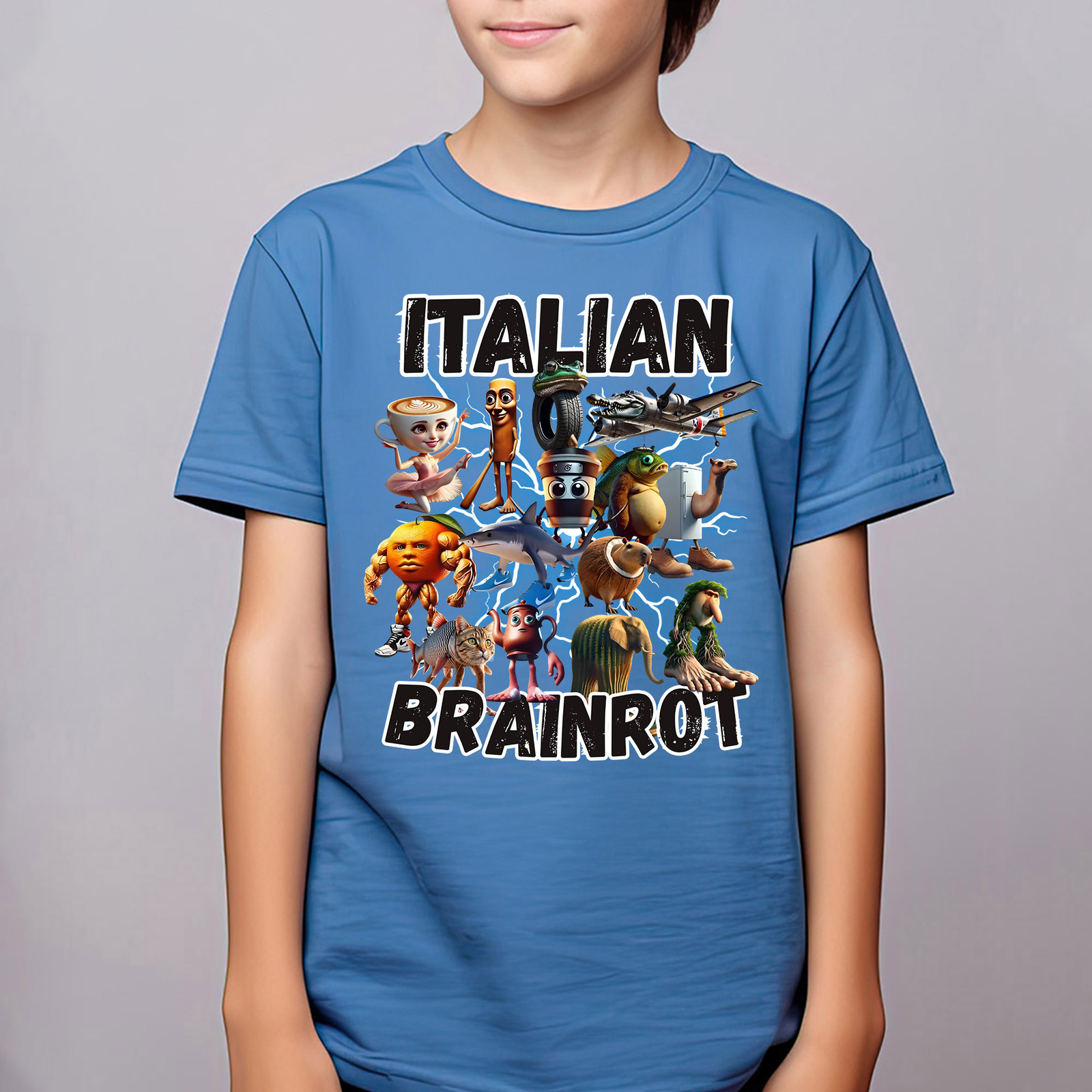 Szukasz wyjątkowej koszulki, która rozśmieszy i zachwyci Twoje dziecko? Ta koszulka z zabawnym nadrukiem "Italian Brainrot" to strzał w dziesiątkę!