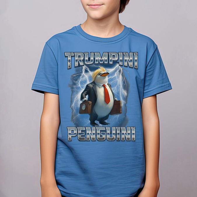 Szukasz wyjątkowej koszulki, która rozśmieszy i zachwyci Twoje dziecko? Ta koszulka z zabawnym nadrukiem "Trumpini Penguini" to strzał w dziesiątkę!