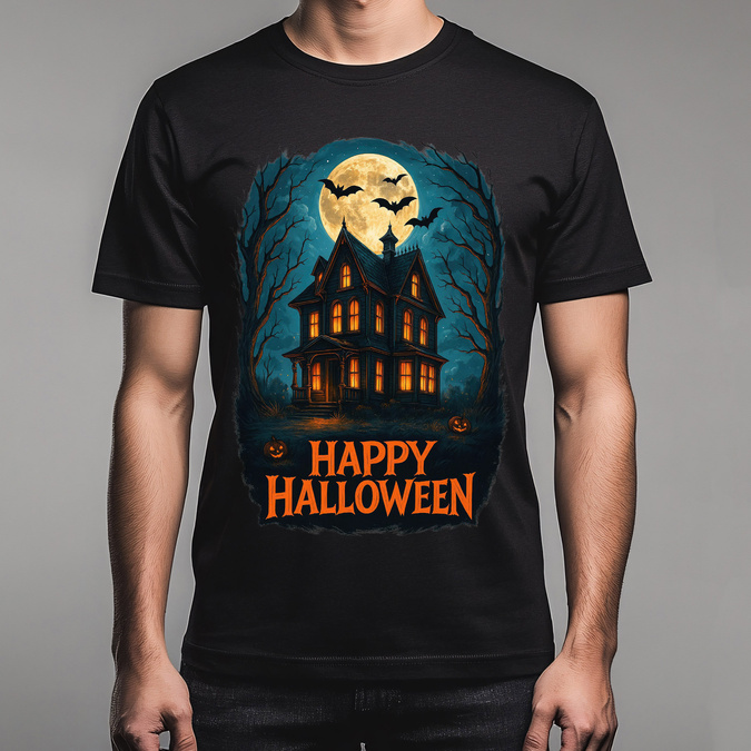 🎃 Koszulka Męska Premium "Happy Halloween" – Nawiedzony Dom i Pełnia Księżyca! 🦇