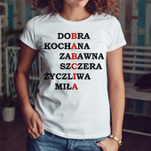 BABCIA - dobra, kochana, zabawna, szczera, życzliwa, miła - koszulka damska